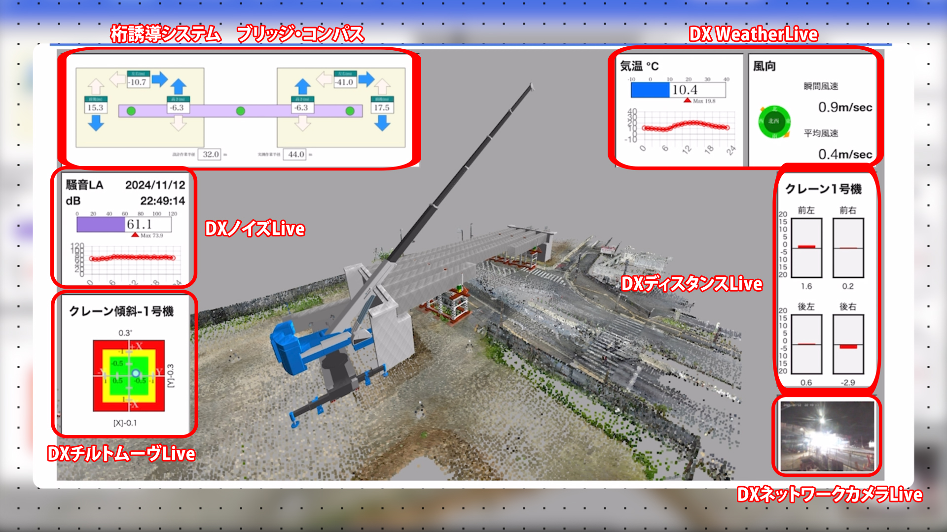 BIM/CIMモデルだけでなく点群データにも対応しているため任意の視点からリアルな施工状況の確認ができます。