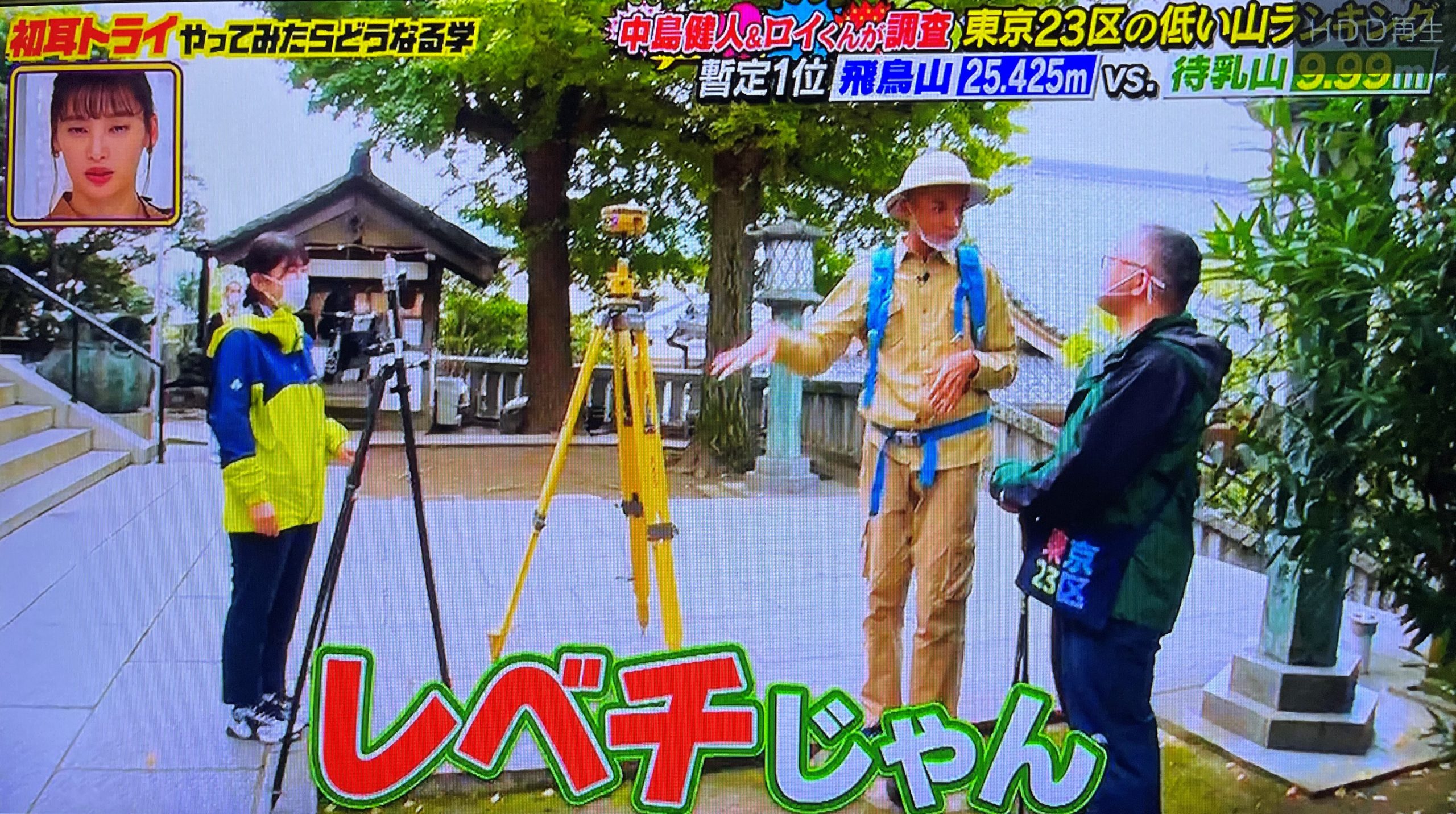 東京23区内の低い山ランキングという番組主旨に伴い、当社社員 小野淳・川島つくしが出演し、弊社所有機材使用にて、技術指導・計測協力を行いました。使用機材;HiperV(Topcon) /TREND-FIERD(福井コンピュータ)「林先生の初耳学」はMBS/TBS系で毎週日曜よる10時放送。