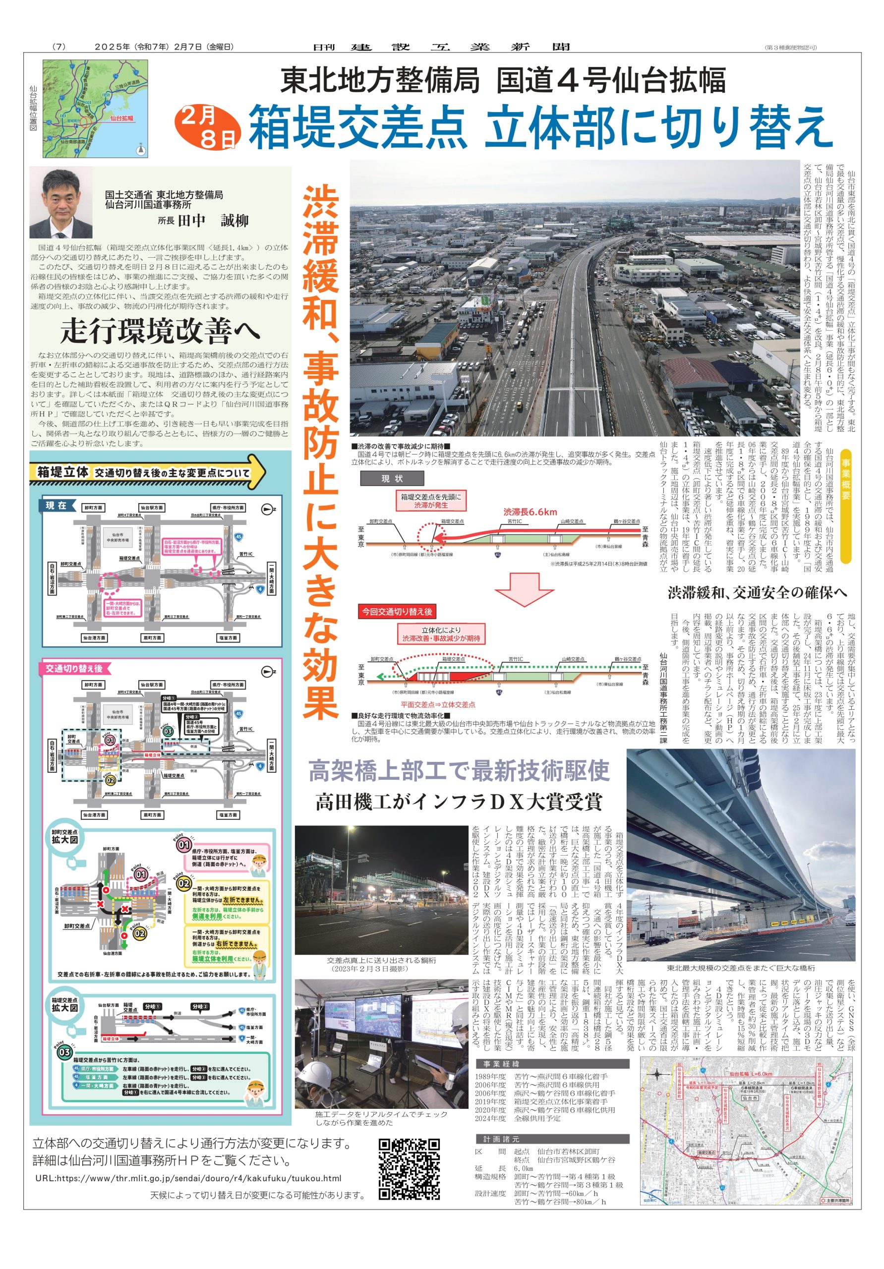 当社が携わらせて頂きました箱堤交差点高架橋上部工での高田機工様の取り組みに関しまして日刊建設工業新聞に掲載頂きました。当社の取り組み内容と致しましては施工計画時の4D架設シミュレーション、3Dレーザースキャナー測量。送り出し作業にてGNSSを活用したリアルタイムのデジタルツイン。これらの取り組みを行いました。