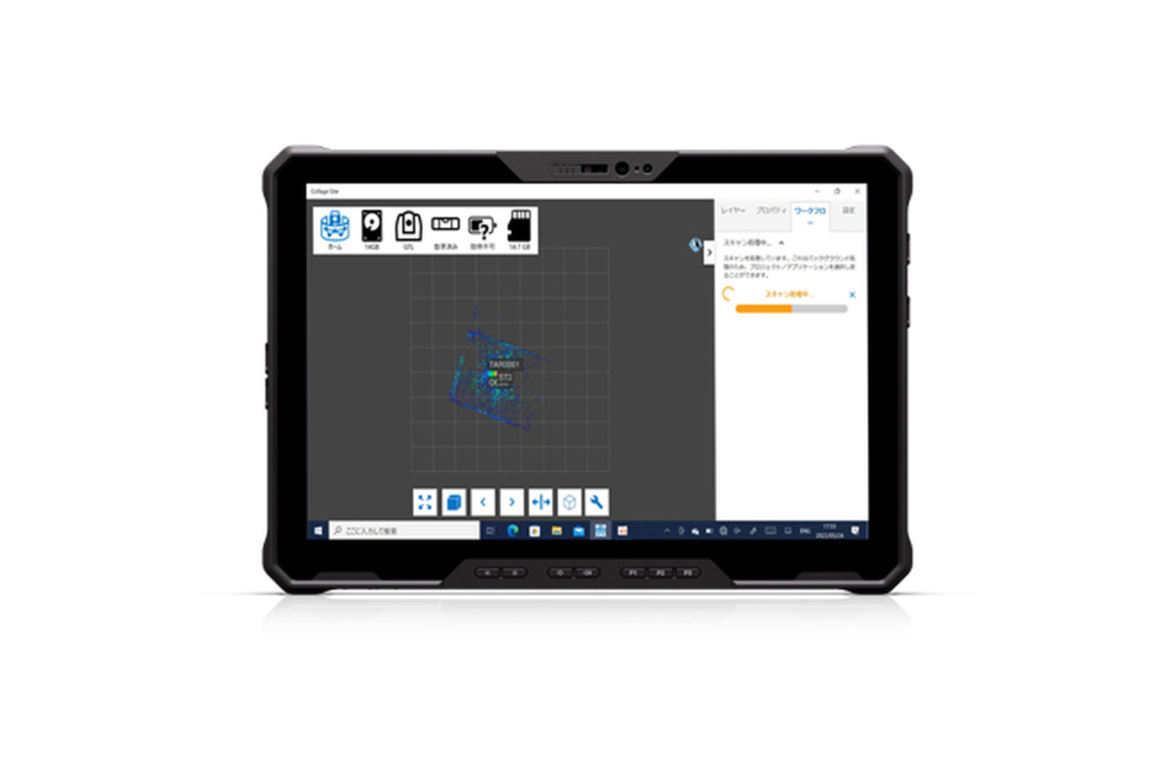 | 特徴 | 遠隔操作でスキャニング Collage Site は、Wi-Fi接続によりタブレット端末からGTL-1200及びGLS-2000/2200の操作が可能です。手元の大画面上で操作が可能で、簡単スムーズに作業が行えます。また、スキャナー本体の画面を使用する必要がないため、器械設置精度への影響がなくなります。 現場で点群解析 器械設置からスキャン開始、そして点群解析まで、タブレット上で作業が可能です。 現場でリアルタイムにスキャン結果を可視化できるため、補測なしの最短作業を実現します。 |