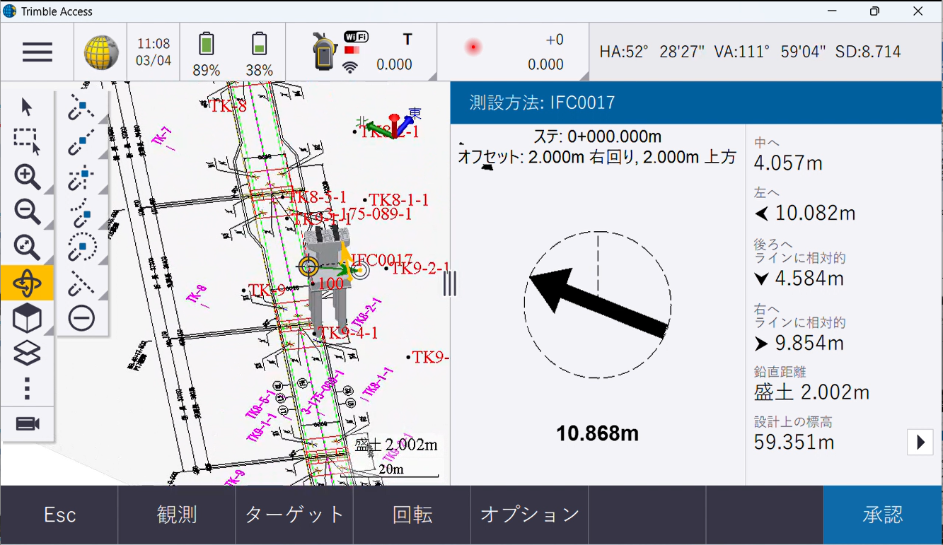 | 特徴 | 測量・建設向けフィールドソフトウェア「Trimble Access」は、トータルステーション、スキャニングトータルステーション、GNSSといったTrimbleが提供する様々なセンサーと接続することが可能です。 インターフェースが統一されており、センサーが変わっても共通した操作性で使用できます。 操作画面では、観測した座標のプロットマークやライン、Trimble提供の背景地図や画像、3Dモデルなどをすべて重ね合わせて表示ができます。 測設作業時には、座標測設だけでなくCADに書かれたラインや3Dモデルによる測設も可能で、3D表示で測設箇所を確認しながら効率よく作業が行えます。現場で観測結果を確認できるため、作業漏れ等が見つけやすく、手戻りのない高精度な図面を作成できます。 また、座標漏れがあればTrimble Connect経由でTBCから座標データをダウンロードすることで、オフィスに戻ることなく現場作業を続けられます。 充実したトピックスや動画で、操作中にわからないことがあればすぐに調べることができます。 |