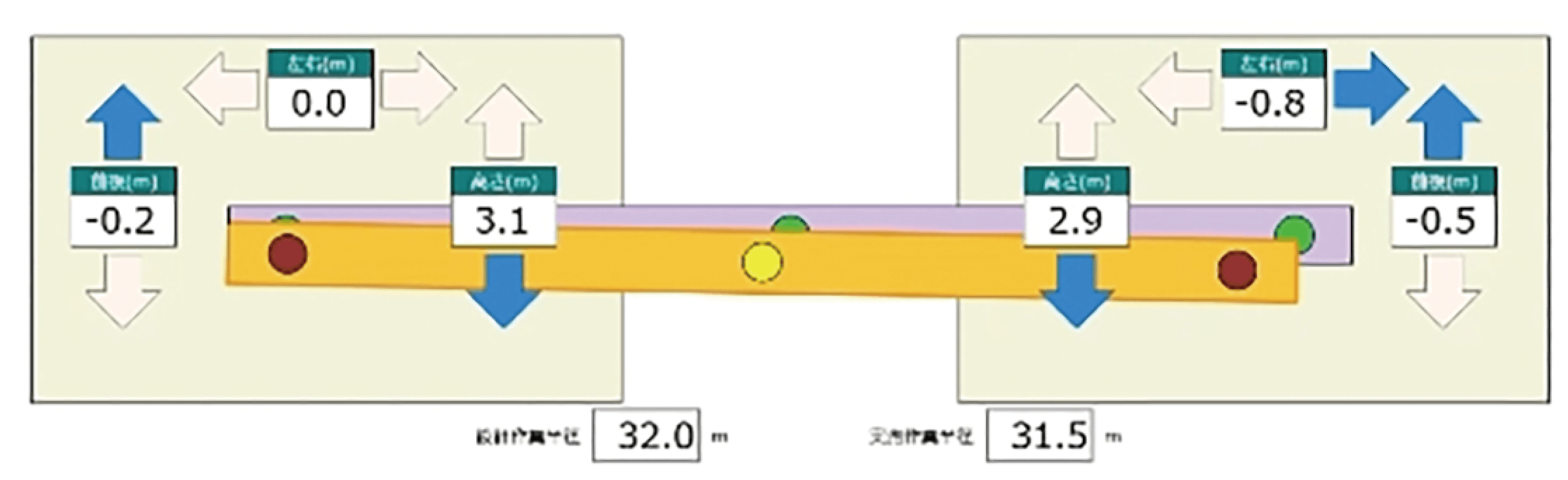 予定位置と現在位置の差を数値と図形で可視化。現況のズレを直感的に確認できます。