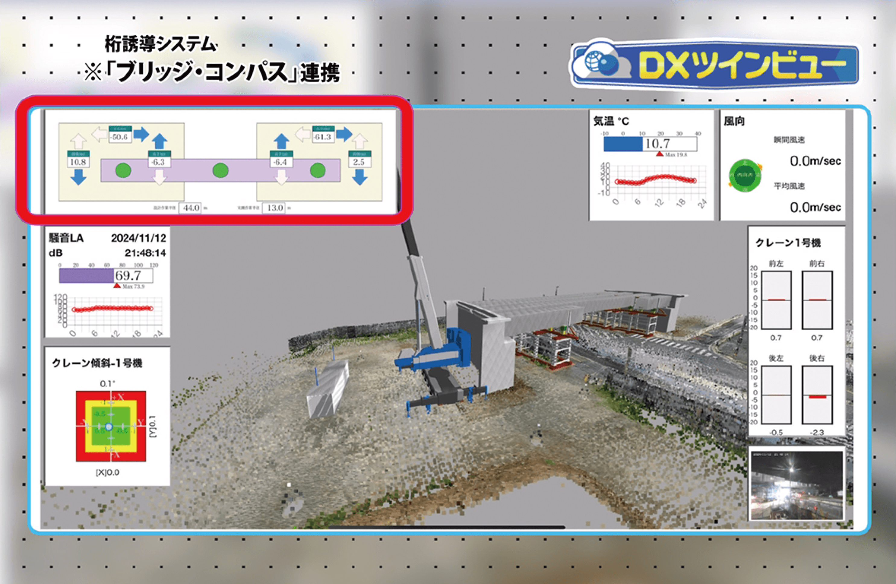 DXツインビューに本製品の各種情報をウィジェットとして配置し、視覚的に現場の状態を確認できます。