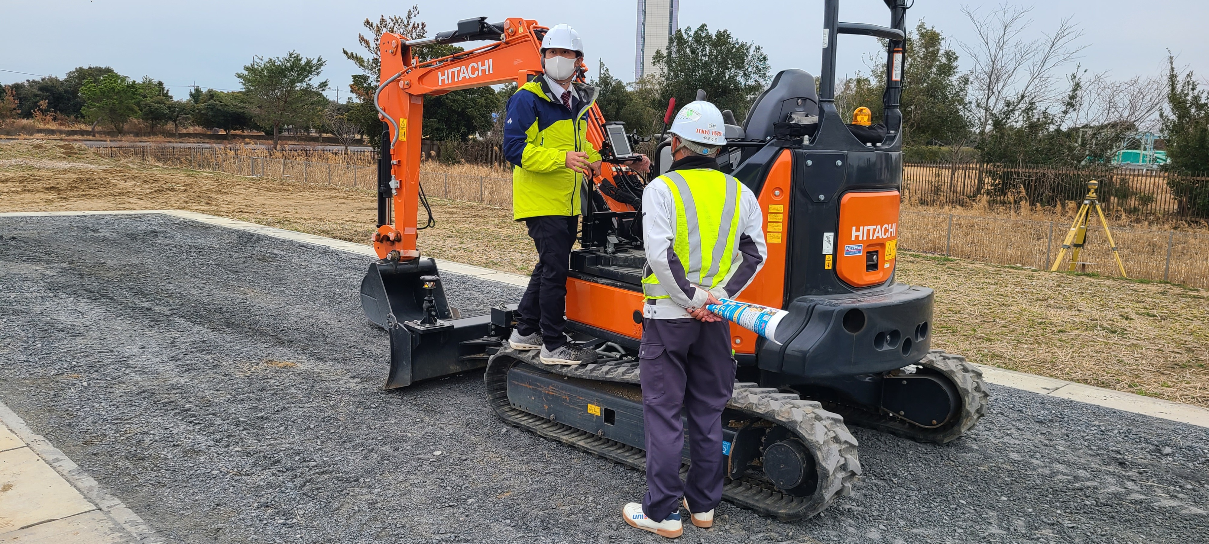 杭ナビ(LN-150)にて追尾させる3Dマシンガイダンスショベルシステムの体験会を実施致しました。