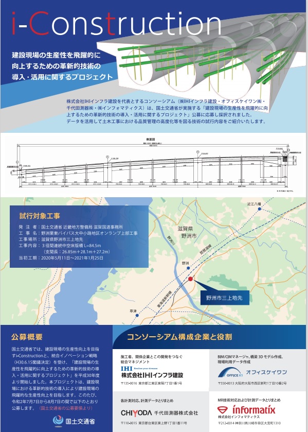 昨年11月に当社HPに掲載させて頂いた、野洲栗東バイパス大中小路地区オンランプ上部工事にて試行が行われた内閣府・官民研究開発投資拡大プログラム(PRISM)での取り組みが、株式会社日刊建設通信新聞社が発行している『建設通信新聞』に掲載頂きました。