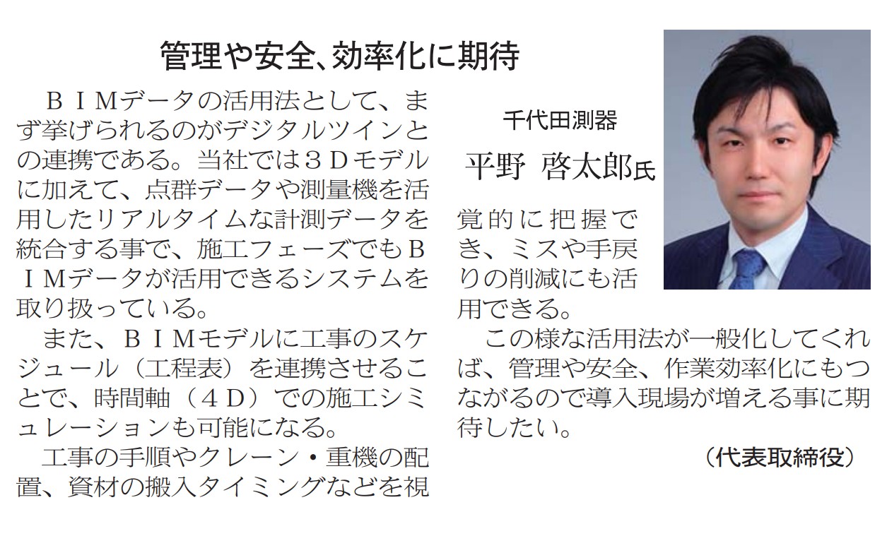 建設通信新聞の「BIM特集2025」にて当社取扱い商材記事・代表インタビューインタビュー記事を掲載いただきました。掲載日:2025年(令和7年)5月29日 (木曜日)掲載ページ:(22、29面)