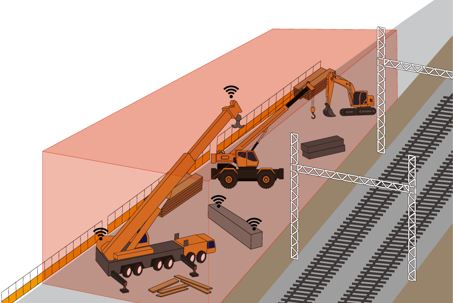 クレーン作業安全エリアを設定する事で、安全エリア外への進入を知る事が可能です。