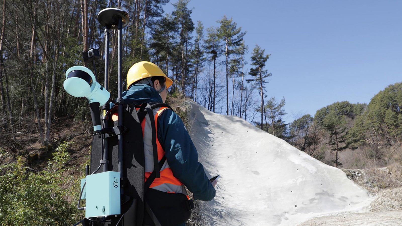 このような現況測量はもちろん、森林や山間部、災害現場など、他の3D計測手法では困難な現場や、構造物の計測、短時間で広範囲を取得したい場合など、現場の状況に応じて柔軟に対応できるよう、ハンディタイプとバックパックタイプ(オプション)の2種類をラインアップしました。