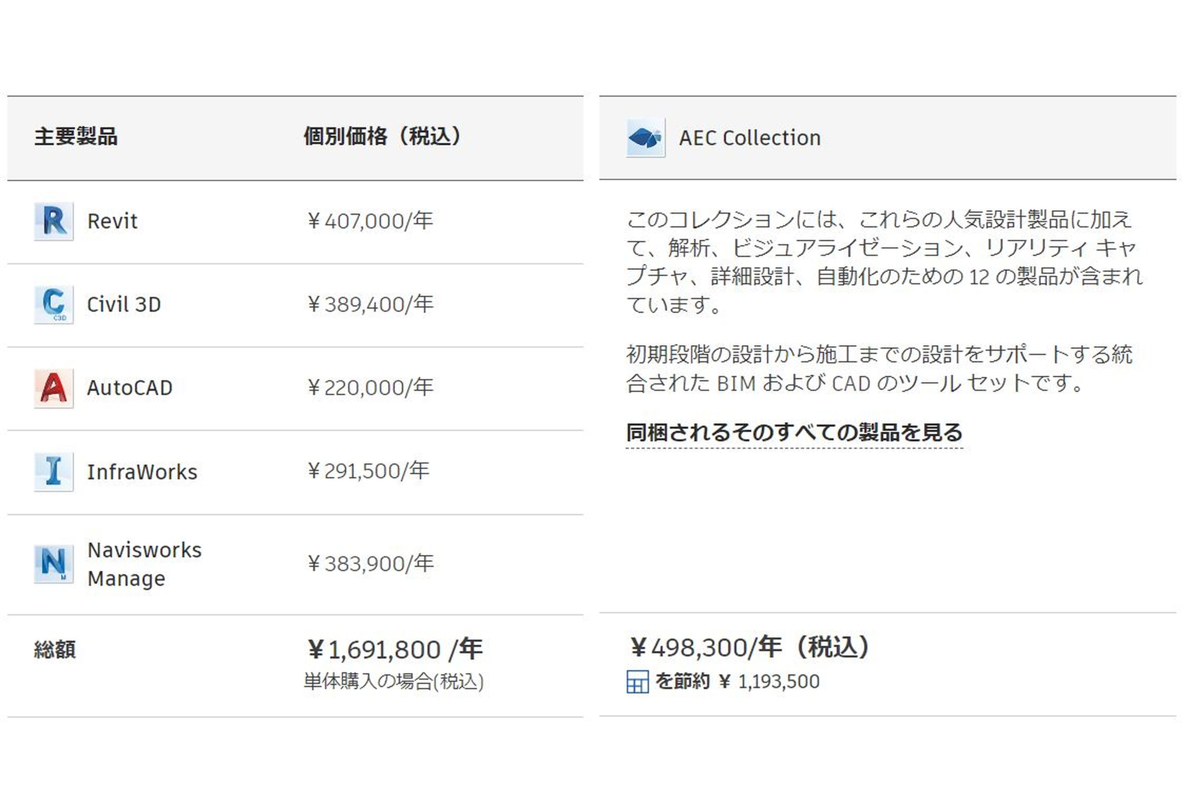 | 業種 | AUTODESK Architecture, Engineering & Construction Collection |