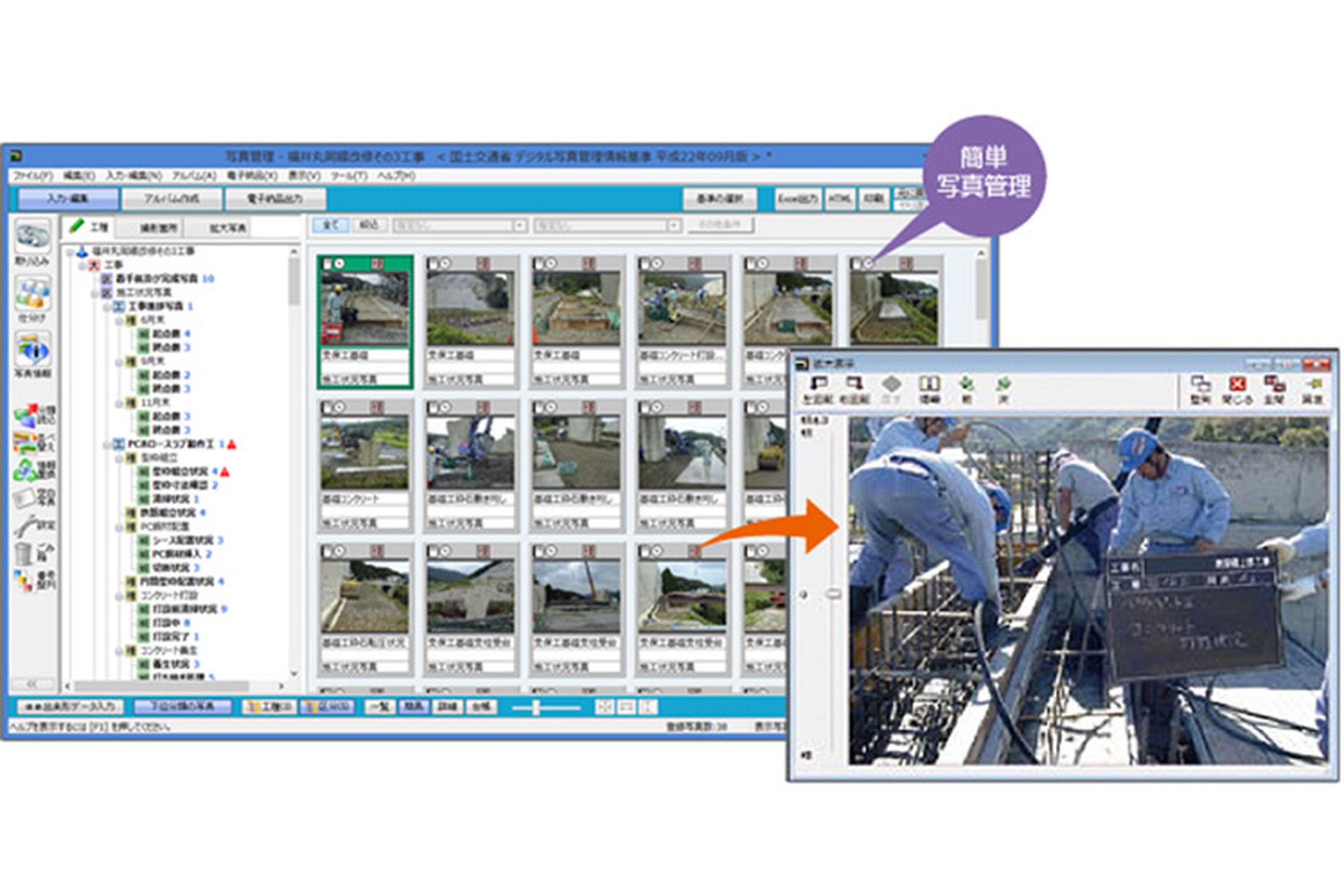 | 特徴 | i-Constructionの対応から施工管理まで現場の省力化をトータルで実現。 工事に必要な測量計算・CAD・出来形・写真・品質管理・電子納品などをパッケージした 土木施工業向けシステム。 公共工事等においてNETIS に登録された新技術を活用する事により、 コストの縮減や工期の短縮が期待でき、技術評価点および工事成績評定点の向上が見込めます。 |