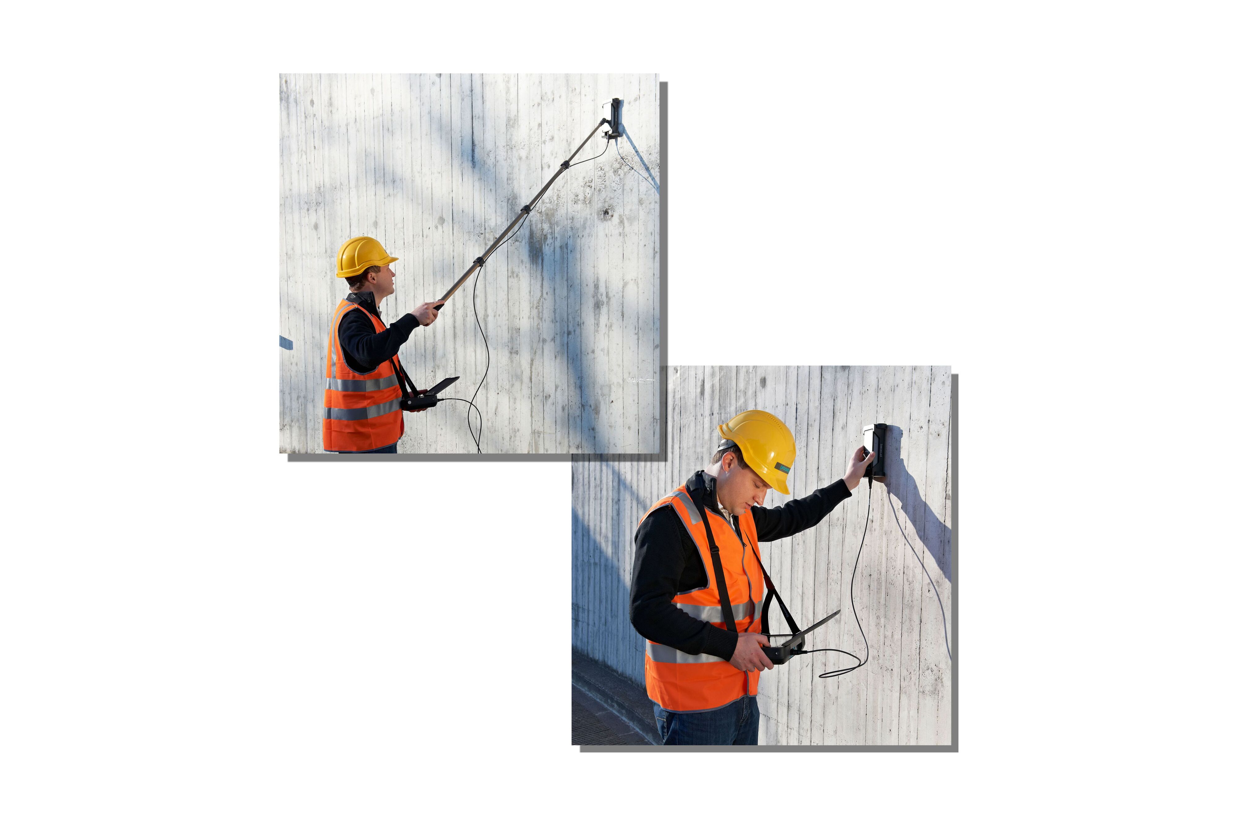 長距離にわたる鉄筋のかぶり厚さを直線状にスキャンします。同時に鉄筋径を測定します。