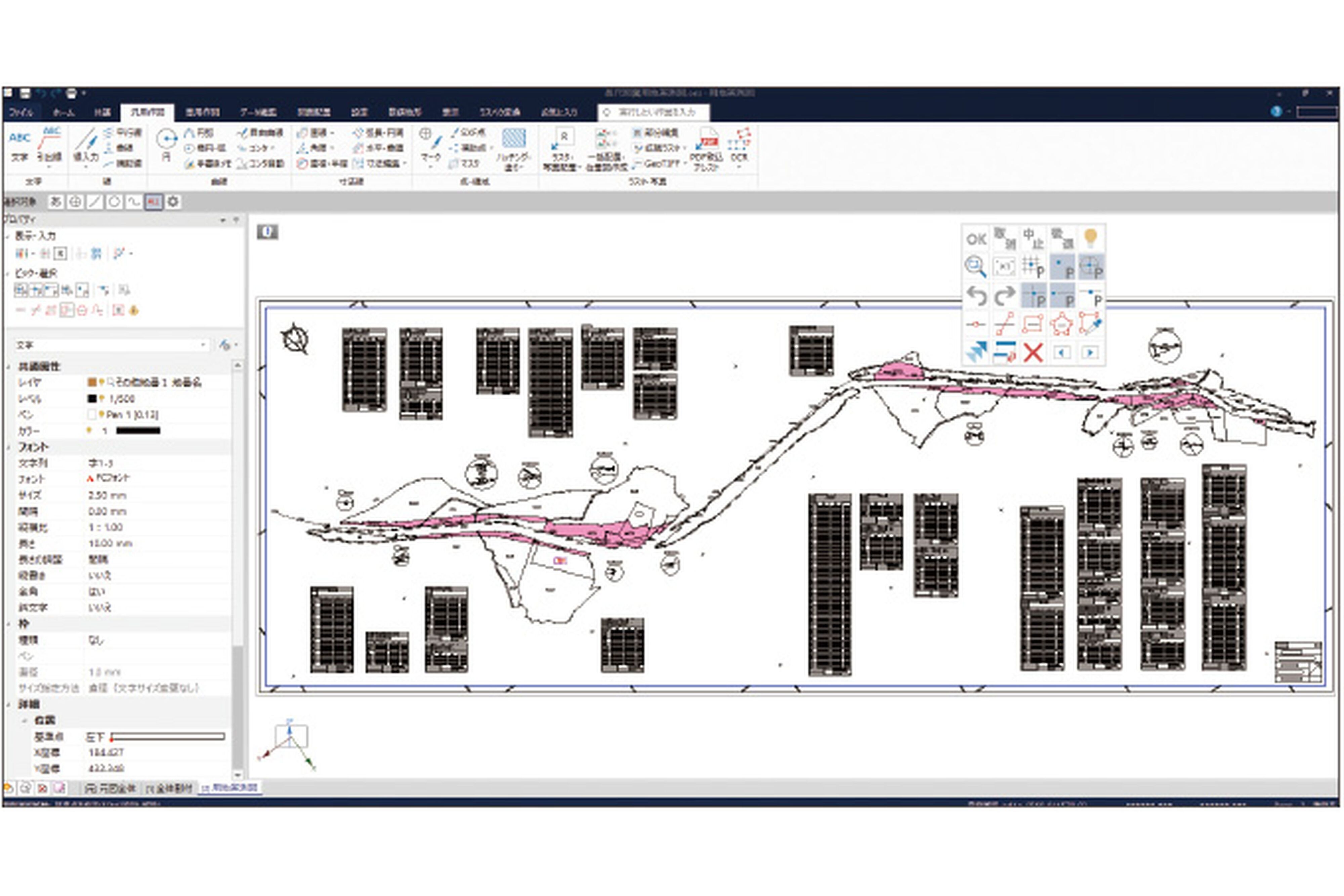 | 特徴 | 地番情報を表示しながら図面編集:測点表示で網確認:線形表示と縦横断:CAD&CAD表示で一般図。 組み合わせ拡がるマルチディスプレイで抜群の効率化を実現! 国土地理院の応用スキーマに従い、JPGIS(地理情報標準プロファイル)に準拠した 基準点・水準測量の成果データ(XML)が出力できます。 地理空間情報の整備、作業規程の準則、測量成果電子納品要領(案)の改定を受け、 今後JPGIS準拠の成果データがさらに求められても安心です。 ・使いやすさを追求した測量CAD ・基準点測量 ・測量計算・用地測量 ・路線縦横断測量 ・3次元計測支援 ・登記図面作成 ・登記資料活用 ・トレンドポイントとリアルタイムに連携 ・電子納品 |
